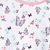 La camiseta de pijama está disponible en 3 versiones: 2 lisas con estampado en la parte delantera y 1 totalmente estampada. Bies a contraste en el escote redondo. Acabado con doble punto en el bajo de las mangas largas y en el bajo.