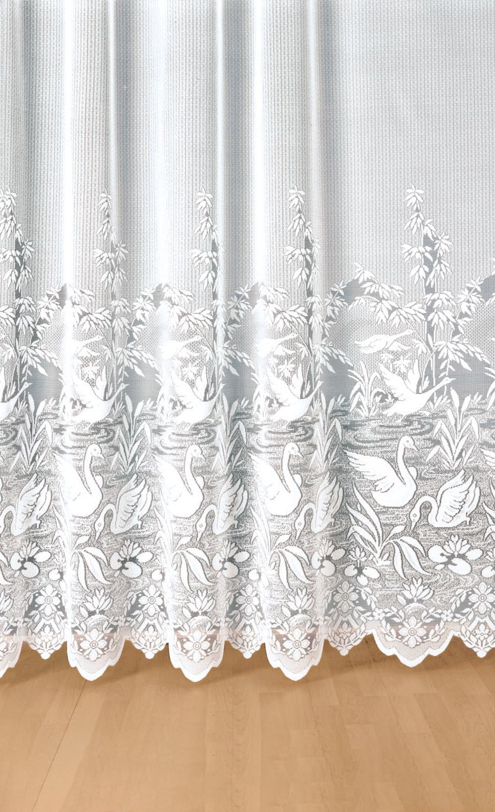Para ocultarte con elegancia, majestuosos cisnes se han apoderado de este magnífico panel de encaje. Su confección de alta calidad está rematada con un trenzado overlock en los laterales. Se entrega listo para colgar, con cinta fruncida y ganchos. Fabricado en Francia. Este producto cuenta con la certificación OEKO-TEX® STANDARD 100 de OEKO-TEX® (n.º CQ 1236/1 IFTH).