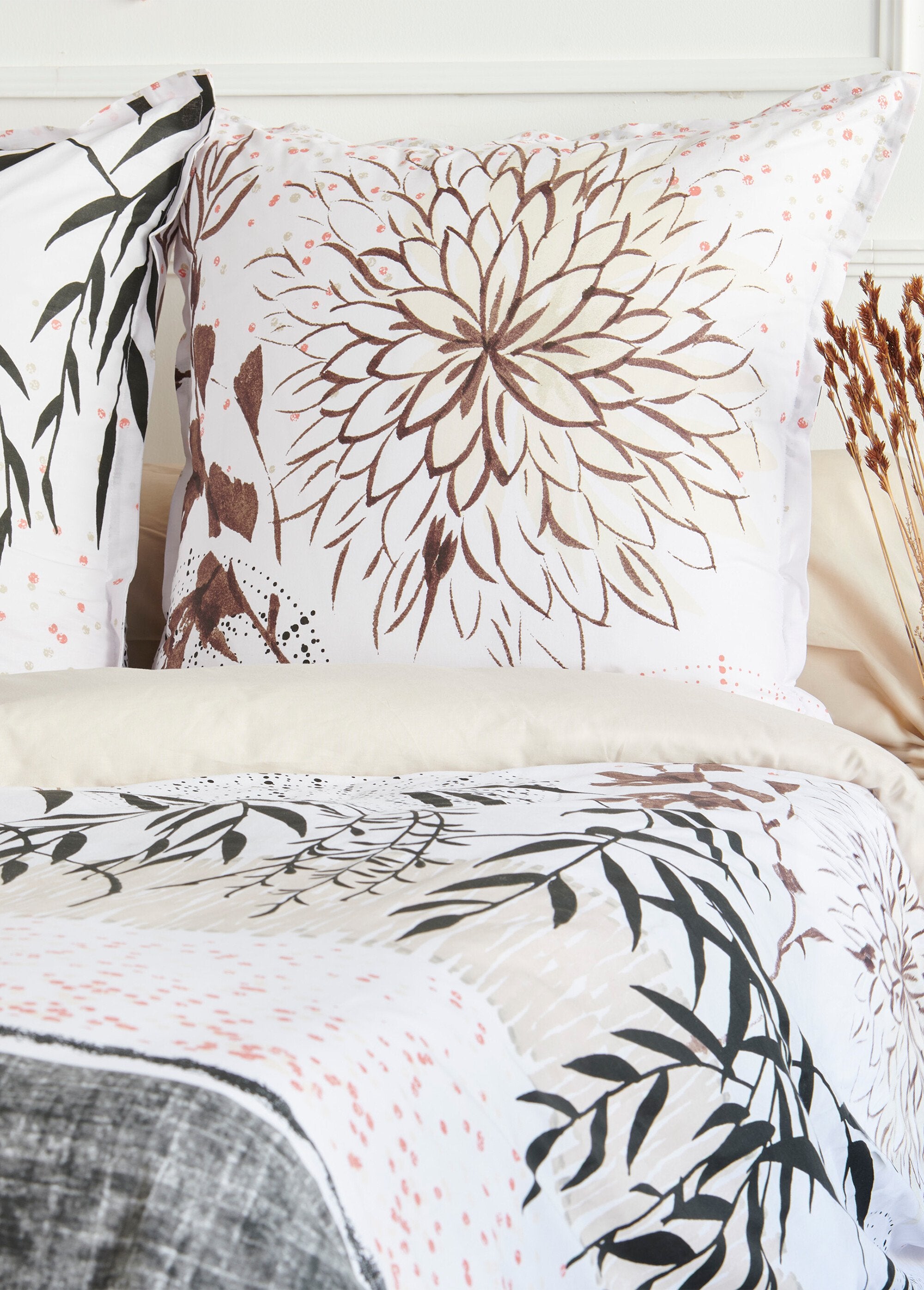Inspiración floral y vegetal en colores suaves... Tendencia zen y refinamiento intermedio para el juego de funda nórdica Kohana. De la colección Blanc des Prés, está elaborado con el mayor cuidado y la certeza de un saber hacer reconocido desde hace más de cuarenta años. Su material cualitativo y denso de puro algodón (57 hilos/cm²) garantiza flexibilidad, suavidad, comodidad y resistencia. Conjunto compuesto por funda nórdica reversible (1 cara estampada, 1 cara lisa) cerrada con botones (2 dimensiones a elegir: 240x220 o 260x240 cm) y 2 fundas de almohada de 65x65 cm.