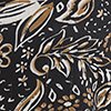 Túnica larga con velo floral brillante y cuello con volantes.  Diablillo negro
