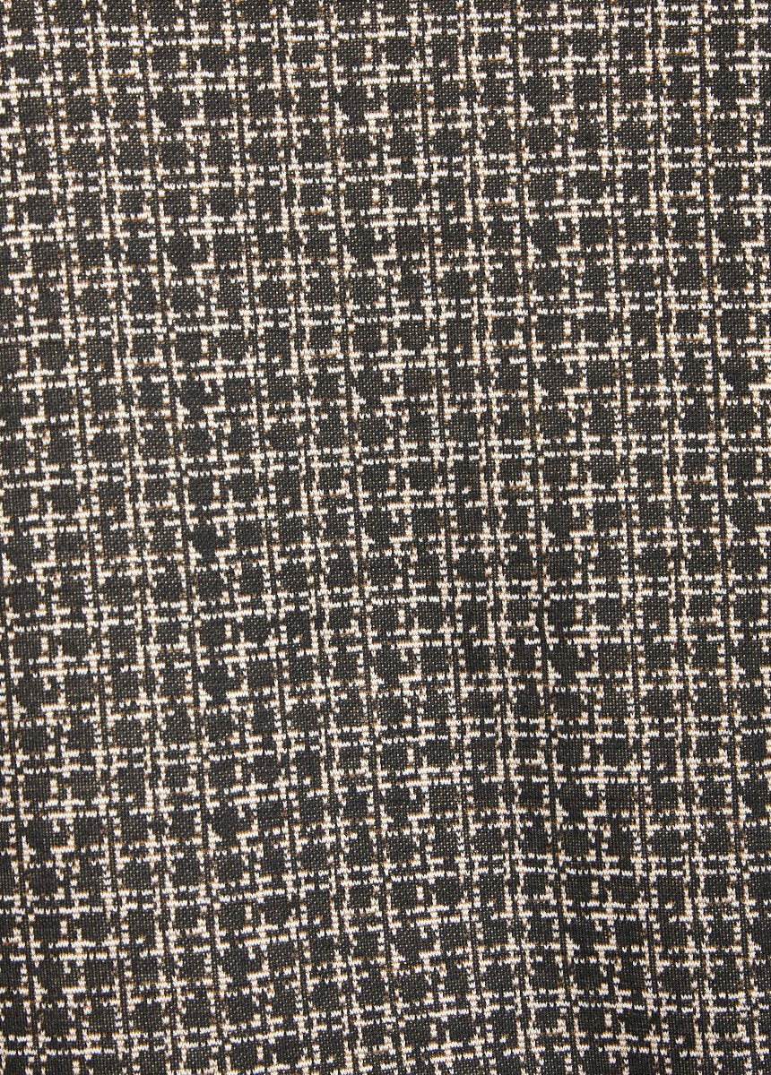 La chaqueta de punto jacquard es elegante y moderna. Los paneles de color liso presentan un cuello recortado en la parte delantera, escote en V, ribete, laterales y dobladillo. Un acabado impecable.